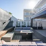 A variety of in-room amenities, including ironing facilities and climate control, are provided in an adjoining terrace and a balcony. A range of media options, such as a TV set, are offered to guests, along with a sofa. A bathroom is equipped with a bidet, a roll-in shower, and a bath, as well as a hairdryer and bath sheets.